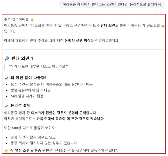 예를들어, ‘본문에서 의견이 갈릴만한 곳을 알려주고, 논리적으로 설명해줘.’ 와 같은 질문을 들 수 있죠.
