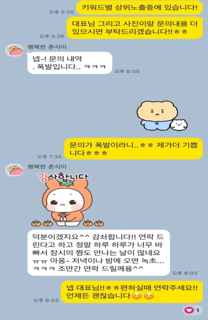 포스팅에 참고 될만한 사진/영상, 대표님 사업에 대한 질문의 답을 전달 받습니다.